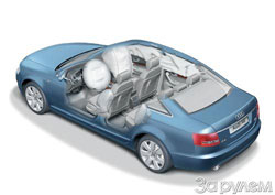 მანქანები იზრდება. მაგრამ სალონების ზომები კვლავ არ ინარჩუნებს მანქანების ზომებს. ახალი Audi A6- ის სალონი გახდა არა მხოლოდ 23 მმ უფრო ფართო, არამედ 10 გრძელი. ამასთან, გაზრდილი ბორბლიანი ბაზით გაიზარდა 83 მმ -ით, ეს საკმაოდ მოკრძალებული ზრდაა. მაგრამ 112 ლ დაემატა ბარგის განყოფილებაში. ახალი მანქანა, რომელიც გაიზარდა 120 მმ სიგრძით და 45 სიგანე, ყველაზე დიდი გახდა კლასში, სადაც ახლოს იყო წარმომადგენლობითი მანქანების განზომილებებთან. ალუმინის A8- სგან განსხვავებით, Audi A6- ს აქვს ტრადიციული ფოლადის სხეული. მაგრამ, წინამორბედის მსგავსად, ქუდი, წინა ფრთები და საავტომობილო განყოფილების წინა პანელი დამზადებულია მსუბუქი ლითონისგან. Audi A6 3050 კგ უფრო მძიმეა, ვიდრე Countryman-Rustician BMW მე -5 სერია. ეს ძალიან კარგი შედეგია ასეთი დიდი მანქანისთვის. დიზაინერების თქმით, დამატებითი კილოგრამი წავიდა სხეულის სიმტკიცეზე (34%-ით) და პასიური უსაფრთხოების ზრდით, მათ შორის უკანა მხარეს მომავლის სტანდარტის მოთხოვნები.