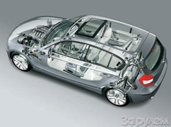 საიდუმლო არ არის, რომ კომპაქტურ კლასში არსებული ყველა თანამედროვე მანქანა არის წინა წამყვანი, ძრავის განივი ადგილმდებარეობით. ბევრს აქვს ყველა ბორბლიანი მოდიფიკაცია, განსაკუთრებით ძლიერი ძრავებით. BMW- ს ტრადიციებიდან პირველი სერია არ უკანდახევა: გრძივი განთავსებული ძრავა, უკანა ბორბლებზე წამყვანი, იდეალური წონა 50:50, გრძელი ბაზა და ფართო ბილიკი. კომპანიის სპეციალისტები აცხადებენ: მხოლოდ უკანა -ბორბლიანი მანქანას შეუძლია სრულად მიიღოს სიამოვნება მართვისგან, ხოლო ოთხი მტკიცებულება დადასტურებას იძლევა. პირველი: უკანა -ბორბლიანი მანქანა აჩქარებული წამყვანი ბორბლები აჩქარებს აჩქარების დროს, აუმჯობესებს clutch და ამცირებს slip. გარდა ამისა, ძრავის გადაადგილებით განლაგება და მონაცემთა ბაზაში გადამცემი ერთეულები ამცირებს ინერციის მომენტს ვერტიკალურ ღერძთან შედარებით, რაც ხელს უწყობს კონტროლირების გაუმჯობესებას, განსაკუთრებით S ფორმის შემობრუნებებში. მესამე, განლაგება საშუალებას გაძლევთ მძღოლი მიუახლოვდეთ მასების ცენტრს, რაც მას საუკეთესო გრძნობას უზრუნველყოფს. დაბოლოს, წინა ბორბლები თავისუფალია ძრავის წევისთან დაკავშირებული ძალებისა და მომენტებისგან და მხოლოდ სუფთა კონტროლის ეფექტს გადმოსცემს.
