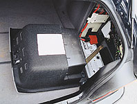 დრაივის ბორბლების უკეთესად დატვირთვისთვის, ბატარეა მოთავსებულია მაგისტრალის ნიშში, მარჯვენა ბორბლის უკან
