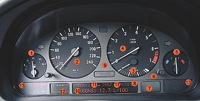 5. საკრუიზო კონტროლის სისტემის კონტროლი. 6. ნისლის თავების შეცვლა. 7. დასაკეცი პანელის ქვეშ - ფირის ჩამწერი კასეტის მიმღები. 8. ცენტრალური ციხე.