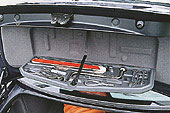 ღრმა ნიშა საშუალებას გაძლევთ განათავსოთ არა მხოლოდ სტანდარტული სათადარიგო ბორბალი 225/55 R16 განზომილებით, არამედ უფრო ფართო 255 მმ