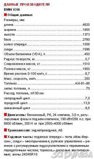 შესანიშნავი მენეჯმენტისას, არსებობს შეჩერების, tenacious საბურავების, ოპტიმალური მასით ღერძების გასწვრივ. დინამიური წამყვანი ხელს უწყობს და დინამიური დისკის სისტემა, შეცვლის სტაბილურობის სტაბილურობის სტაბილიზატორებს, ასევე აქტიურ საჭის კონტროლს, წყალობით, რომლის საჭე არ შეიძლება დაიბლოკოს, შეჩერებით, სანამ არ ამბობს (რაც ამბობს, გზა, მძღოლის რეაქციის დაგვიანებით). BMW-630I რჩება მართვადი თითქმის ნებისმიერ სიტუაციაში, და ამისათვის თქვენ არ გჭირდებათ მუდმივი მომზადება. აქ არის ნამდვილი ცეცხლგამძლე დონეზე. ავტომანქანის ფასი 91 ათასი ევროს ფასი, შეიძლება წარმოიდგინოს, რომ ადამიანებს შორის, ვისაც შეუძლია ასეთი თანხის გადახდა, ბევრს უფრო მძლავრი BMW-650i, რომელიც მხოლოდ 16 ათას ძვირია. BMW-630I- ის სპეციალური გამოცემა დამატებითი აღჭურვილობის მსუბუქი პაკეტით, 74,900 ევროსთვის. თქვენ უნდა მოვიდეს ადაპტაციური ფარები, რომლებიც მიმოიხედე როტაციის, პნევმატური პალატების სავარძლები, გამჭვირვალე ლუქი სახურავზე, ნავიგაცია, სუპერ სწრაფი აქტიური საჭე (მწვავე!) და ჭკვიანი სტაბილიზატორები დინამიური წამყვანი ნაკრებიდან. თუმცა, მიუხედავად იმისა, რომ შესანიშნავი ბალანსი, BMW-630I- ს ცოტა შანსი აქვს უფრო ძლიერი თანამემამულის ბაზარზე. შვიდი წამი, სანამ ასობით დღეს უკვე ითვლება ლეტარული overclocking პრესტიჟული კუპეს. On ჯერ, ohray!