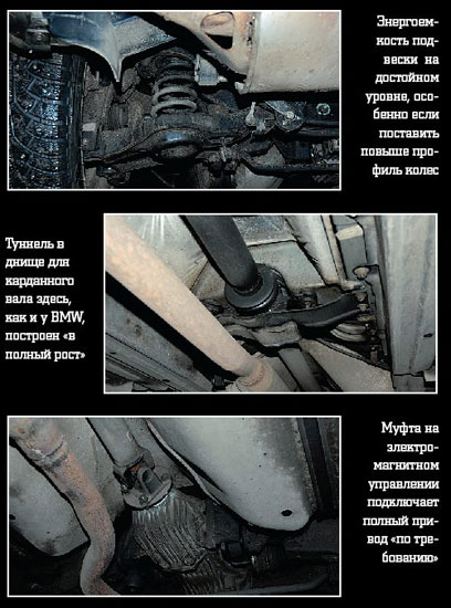 ელექტრონული BMW საყელო, თითქოს შექმნილია off-road. იგი აღიარებს ქვიშის საჭირო ქვიშაში, რომელიც საშუალებას აძლევს ბორბლებს, რათა დარწმუნებულები იყვნენ, რომ ფხვიერი ადგილზე იყვნენ. Mazda CX-7 Crossovers- ს შორის არის ერთ-ერთი პირველი ანტი-გამოცდის სისტემის ხარისხზე, მაგრამ X3- თან შედარებით, მისი საყელო ძალიან მკაცრად იწვევს ძრავას და არ არის ამოღებული. აუცილებელია პრაქტიკაში გასეირნება, რომ ასეთი ხანგრძლივი და დაბალი, ისევე როგორც Mazda, წინა skel არის impractical. მიუხედავად იმისა, რომ Mazda აღჭურვილია უმაღლესი პროფილის ბორბლებით, BMW უკეთესია ასფალტის დარღვევებით, უფრო დარწმუნებული და კომფორტულია. ენერგეტიკული ინტენსივობის კონკურენტები დაახლოებით იგივეა, მაგრამ Mazda CX-7 შედარებით BMW X3 პასუხობს ბზარები უფრო მუყაოს. საინტერესოა, რომ ორივე მანქანას არ გააჩნია იძულებითი ინტერ-ღერძის დაბლოკვა, რომ ბევრი სხვა კროსოვერი მწარმოებლები იმდენად ამაყობენ. ეს კიდევ ერთხელ ადასტურებს, რომ ასეთი კლასის სატრანსპორტო საშუალებების მრავალრიცხოვანი რეჟიმის გადაცემა საკმაოდ მარკეტინგული ნაბიჯია, ვიდრე სასიცოცხლო აუცილებლობა. თანამედროვე couplings და ასე რომ გაუმკლავდეს.