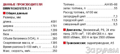 წარმოიდგინეთ, რა სახის კლასი აღმოჩნდებოდა, თუ ქუდის ზომები განისაზღვრებოდა ოთხი ცილინდრით. უნდა დაამატოთ, რომ BMW ძრავები მუდმივად გაუმჯობესებულია. და ამჟამინდელი თაობა სამი -ლიტრიანი ძრავა უფრო ძლიერია, ვიდრე ის, რაც პირველ Z4- ზე იდგა სამი წლის წინ, 35 ძალისთვის. რა თქმა უნდა, ეს შესანიშნავი იყო დინამიკაზე. რა თქმა უნდა, Z4 ავტომატური აპარატით არის 2000 ევრო მეტი, ვიდრე სახელმძღვანელო, მაგრამ ავტომატური ყუთის მიერ შექმნილი კონტროლის მოხერხებულობა ღირს. მაგრამ უშედეგოდ უნდა ველოდოთ მეექვსე ან მეშვიდე ეპიზოდების BMW- ს კომფორტის როდსტერიდან.