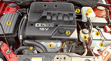 1. ნავთობის dipstick. 2. ნავთობის სატანკო კისრის ძრავის დანამატი. 3. შუშის ტანკის სატანკო. 4. გაგრილების სისტემის გაფართოების სატანკო. 5. ძირითადი სამუხრუჭე ცილინდრის სატანკო. 6. მრავალჯერადი დატენვის ბატარეა. 7. საჰაერო ფილტრაციის საცხოვრებელი. 7. ჰიდრავლიკური საჭის სატანკო.