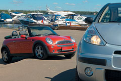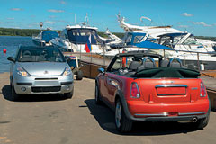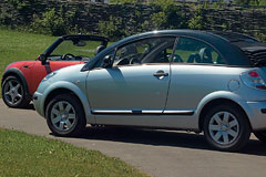 ორივე ღია მანქანაში მართვა ნამდვილად კურორტის სიამოვნებას იწვევს - თუმცა, დიდი სიჩქარით, ქარი იწყებს cling და howl. ამიტომ, უმჯობესია არ მართოთ, არამედ საკურორტო რეჟიმში წასვლა - მოდუნებული და ნელა. იმის გამო, რომ 60 კმ/სთ -ის შემდეგ ნიავი ქარს გადააქცევს და მე ნამდვილად მსურს გვერდითი სათვალეების გაჩერება. და 80-100 კმ/სთ სიჩქარით დაქვეითებული ზემოდან, რეკომენდებულია მხოლოდ ღამის გასათევად კლუბში, სიტყვის ყველა გაგებით. დილით ადრე, გზები ცარიელია, მძღოლი კი მხოლოდ საკუთარ თავს და მგზავრებს რისკავს. ამასთან, Citroen- ზე ეს შეიძლება გაკეთდეს რკალებით, ასევე არსებობს დაცვა და სხვა პრობლემები MINI- ზე: საყურეების უკან არის უსაფრთხოების რკალები, ხოლო ბალიშები წინ არის.