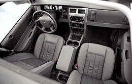 პირველი, რაც მოხდა, როდესაც მე მოხერხებულად დასახლებული რბილი ტყავის სკამზე და მიმოიხედე გარშემო: არის ცირკის შტატებში? Durango- ს ინტერიერში არსებული სწორი ხაზები და ბინა, არ დატოვებენ ეჭვებს, რომ დიზაინერის მთავარი ინსტრუმენტი მმართველი იყო. მაგრამ აღიარება, საჰაერო მრგვალი, რბილი მომატება მოსახვევებში გამოიყურება შიგნით ამ მანქანის არ უკეთესი openwork შენახვის hairy ფეხები Buffalo კანონპროექტი. სამართლიანობაში, ჯერ კიდევ უნდა აღინიშნოს, რომ სიჩქარე და ტაქომეტრი არ არის კვადრატი, ხოლო Dashboard- ზე მეტი ვიზუალური მსუბუქია.