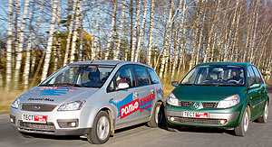 რომელი გირჩევნია? ორივე კარგია სექსუალური აზროვნებით. ისინი ერთმანეთისგან განსხვავდებიან მხოლოდ იმ ნიუანსებამდე, რომ ყველას თავისუფლად შეუძლია შეაფასოს საკუთარი გზით. სცენებში უკეთესია, რომ წინ წაიყვანოთ ხედი ფანჯრებისა და სახურავის წინა თაროებზე. ფორდი პასუხობს მშვენივრად იკითხება, თუმცა ძალიან კონსერვატიული, დაფის გარეგნობით. ფრანგი იპყრობს უჯრის, ჯიბეების, ღრუების წარმოუდგენელ რაოდენობას ყველა სახის ნივთისთვის. ხელთათმანების ყუთი და ეს მოცულობა ჰგავს სანტექნიკის ჩანთას. და Si-Max ათბობს ბორტ კომპიუტერის რუსიფიცირებული მენიუს სულს. ახლა ნუ ასვლი ლექსიკონში, რათა გაიგოთ, თუ რა სახის აბრააკადაბრაა ასეთი საწვავის დონე. ბრავო, ფორდი! ყველა დანარჩენი ტოლია ლურჯი ოვალური, მოდით, მანქანები რუსეთისთვის შეისწავლონ მშობლიური მეტყველება.