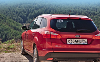 Ford Focus სადგურის უკანა ნაწილში სრულყოფილად ატარებს გზას და ემორჩილება ხელმძღვანელს.