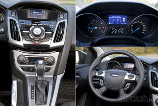 Ford Focus Dashboard არის შესანიშნავი მაგალითი წარმატებული კომბინაცია დიზაინი, ფუნქციონირება და წაკითხვის. უწყვეტი ოთხი ლაპარაკი საჭე, ფაქტობრივად აღმოჩნდა კომფორტული. პრიალა Sony აუდიო სისტემა მცირე არასასიამოვნო გასაღებები დაუყოვნებლივ იჭერს ყველა თითის ანაბეჭდები, მაგრამ ჟღერს კარგი.