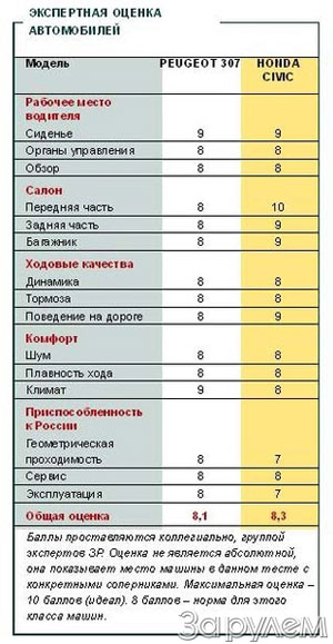 მიხაილ გზოვსკი: Honda Victory მიღწეული იქნა თუნდაც სანახაობრივი გარე მონაცემების გათვალისწინებით. მაგრამ არსებობს შიში, რომ რუსული ზამთრის პირობებში სივიკი არ იქნება ისეთი პრაქტიკული, როგორც Peugeot. Peugeot 307 სწრაფია, მაგრამ ეს არ იწვევს სპორტულ ემოციებს. მაგრამ მას შეუძლია მიმართოს ოჯახის აპარატის როლს, რომელიც ადაპტირებულია რუსულ პირობებში.
