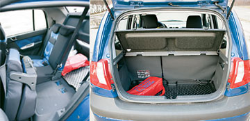 Hyundai Getz ადგილები იმსახურებენ ცალკეულ ქებას. სიმტკიცისა და რბილობის ოპტიმალური კომბინაციის გარდა, მათ აქვთ გამოხატული პროფილი, აქვთ რეალური მხარდაჭერა და, გარდა ამისა, გადადიან ცალკე წინა და უკან საკმაოდ დიდ სიმაღლეზე. უბრალოდ მამაცი! საყრდენის არაღრმა სირცხვილი, ის უკან იხევს სავარძლის უკანა მხარეს და არ აქვს კორექტირება.