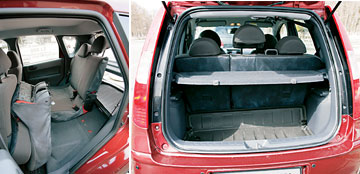 მაგისტრალური არ არის ფართო. მისი მოცულობა მშვენივრად იზრდება, თუ უკანა მგზავრებს შესწირავთ. ფარნები გახსნილია. კომფორტული სახელურია სახურავის გასახსნელად
