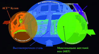 სხეული ემყარება თანამედროვე Acura MDX- ს. წინა ნაწილი თითქმის იდენტურია. შემდგომი განსხვავება განპირობებულია უფრო დიდი საპილოტე ბორბლისა და უკანა სუსპენზიის სხვა არქიტექტურით (მფრინავი იყენებს VTM-4 ყველა ბორბლიანი გადაცემის გამარტივებულ ვერსიას, რომელიც ასევე დამონტაჟებულია ამერიკის რიდლინის პიკაპზე). სხეული 52% –ით შედგება მაღალი სიძლიერის ფოლადისგან. იგი უფრო მკაცრი გახდა ვიდრე მისი წინამორბედი სტატიკაში 41% -ით და 15% -ით გადახრა. ACE ტექნოლოგიის გამოყენება (მოწინავე თავსებადი ინჟინერია) საშუალებას გაძლევთ აითვისოთ დარტყმის ენერგია შეჯახებისას. მანქანის წინა მხარე ფეხით მოსიარულეთა ერთგულია. და სავარძლების სამივე რიგები აღჭურვილია გვერდითი საჰაერო ჩანთებით. მანქანაში აქტიური თავშეკავებაა და მეორე რიგში იზოფიქსი დამონტაჟებულია და მესამედის მარჯვენა სავარძელი.