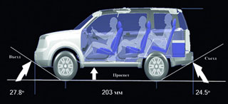 კონგრესის და გამგზავრების საკმაოდ დიდი კუთხეების მიუხედავად, საპილოტე გეომეტრიული ჯვარედინი უნარი მნიშვნელოვნად შემოიფარგლება გრძელი ბაზით (2780 მმ), მცირე კლირენსი ამ ტიპის მანქანისთვის (203 მმ) და აბსოლუტურად არაკომერციული შეჩერება (მაკფერსონი , მრავალჯერადი ბმული თავში) ძალიან მოკლე ნაბიჯებით)