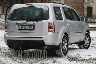 დიდი, ექსტერიერის ძლიერი დეტალებით, ერთი შეხედვით ძალიან ფართო შიგნით, Honda Pilot Crossover- ის ნებისმიერ სიმაღლეზე და ზომაზე. ამერიკული ბეღელი, შენ ამბობ. მოდით გავარკვიოთ, ეს არის ფარდული?! პირველი რაც მე თვითონ გავარკვიე: რაც უფრო დიდია მანქანა, მით უფრო ადვილია მისი კონტროლი. იქნებ სწორედ ამიტომ, მოსკოვის გზებზე, ჩვენ სულ უფრო ხშირად ვხვდებით SUV- ს? ზომით, Honda Pilot თანაბარი პირობებით Land Cruiser. ახლა, ალბათ, შემიძლია ავტობუსის საჭესთან ჯდომა. :-)