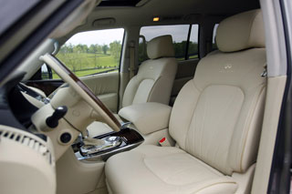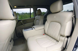 QX56 კომფორტული 7- ან 8 ადგილიანი კერძო თვითმფრინავი, ნაწილობრივ იმის გამო, რომ მეორე რიგის ადგილების შეიძლება შედგებოდეს ორი სკამი და კონსოლები მათ შორის, ნაცვლად სტანდარტული Sofa. Infiniti მოახერხა გაზარდოს ფართი მეორე რიგის მგზავრების 104 სმ, ამით გადააჭარბა უახლოეს მეტოქეს, Mercedes-Benz GL450, 3.8 სმ. მაშინაც კი, თუ მაღალი კალათბურთელის საჭე იქნება მართავდა, იქნება უამრავი სივრცეში მეორე რიგში. 2011 წელს, ეს ჯიპი ასევე მიიღებს უკანა სამგზავრო ადგილს ელექტრო დისკზე. დააჭირეთ ღილაკს, და თქვენი მგზავრი ადვილად და ადვილად დაეცემა მესამე რიგის ან გამოვა იქიდან.