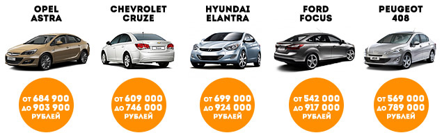 ხუთი კლასის სედანი 1 მილიონამდე რუბლამდე