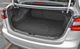 სედანი კია ცერატოს მაგისტრალის მოცულობა არ არის გაცილებით დიდი, ვიდრე Kia Ced 421-ლიტრიანი ჰეჩბეკის წინააღმდეგ 380. იატაკის ქვეშ არის სრული ნაკრძალი. თავზე - სახელურები სავარძლის უკანა ნაწილის დასაკეცი 2: 3 თანაფარდობით