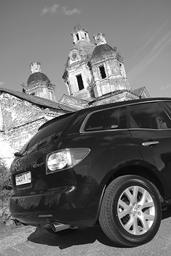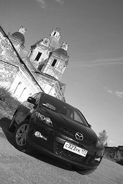 რა თქმა უნდა, თუ თქვენ ახლომდებარე მანქანის ევროპულ და რუსულ ვერსიებს დააყენებთ და ტესტირების რბოლა გამართავთ, ალბათ, ევროპელი გარკვეულწილად უფრო მეტ სისწრაფეს აჩვენებს. ამასთან, არ უნდა დაგვავიწყდეს, რომ, როგორც დაკარგული ცხენების კომპენსაცია, CX-7 რუსი მფლობელი შესაძლებლობას იძენს 95-ე ბენზინით, ხოლო ევროპული ვერსია ყოველმხრივ მოითხოვს 98-ე. Yaroslavl– დან Uglich– დან და უკან დაბრუნების გზაზე, ჩვენ სპეციალურად ყურადღება მივაქციეთ ასოცირებულ ბენზინგასამართ სადგურების ასორტიმენტში 98 - ე ბენზინის არსებობას და ვერ ვიპოვნეთ იგი რომელიმე ბენზინგასამართ სადგურზე. ასე რომ, Mazda– ს გადაწყვეტილებამ შეინარჩუნოს უფრო გავრცელებული ბენზინი დინამიკაში მცირე ზარალის ღირებულებით და მაქსიმალური სიჩქარე შეიძლება გამოყენებულ იქნას მხოლოდ. უფრო მეტიც, მიუხედავად მაქსიმალური 180 კმ/სთ სიჩქარით, ავტომობილმა დამაჯერებლად განვითარდა სიჩქარე 200 - მდე, Speedometer– ის თანახმად. კიდევ ერთი მნიშვნელოვანი განსხვავება რუსულ ვერსიას შორის, გამოცხადებული მაზდა არის შეჩერება, რომელიც შეიცვალა უფრო მეტი რბილობისკენ. გულწრფელად გითხრათ, ჩვენ განსაკუთრებული განსხვავებები ვერ შევამჩნიეთ. რა თქმა უნდა, როგორც აჩქარების შემთხვევაში, კარგი იქნება, რომ პირდაპირ შევადაროთ ორივე მოდიფიკაცია ერთმანეთთან, მაგრამ ჩვენი აზრით, ყველაფერი, რაც დაწერილია ევროპული მოდიფიკაციის ტესტში შეჩერების შესახებ, მართალია რუსული ახალი პროდუქტისთვის: CX-7 თითქმის სრულყოფილად დაბალანსებულია კომფორტის თვალსაზრისით. /კონტროლირებადი. მანქანა მშვენივრად მართავს, მისი ჩვევები უფრო სპორტულ მანქანას ჰგავს, ვიდრე კროსვორდს, რომელიც ასევე დაადასტურა ტესტით სპეციალურად მომზადებული სარბოლო გზატკეცილზე, რომელიც მოწყობილია ძველი სამხედრო ტრანსპორტის აეროდრომის ტერიტორიაზე. აუცილებელი იყო იმის დანახვა, თუ რა პროფესიონალმა მოტოციკლერებმა, რომლებიც მაზდას წარმომადგენლობით იყო მოწვეული, ასეთი მანევრებისგან საშუალო მეტატური კროსვორდი გააკეთეს, ჩვენი აზრით, უბრალოდ გადაიტანეს.