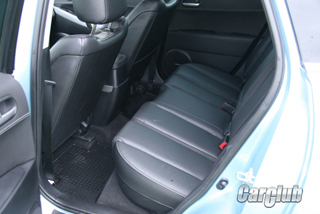 ინტერიერში, სპორტული ნოტები, რომლებიც თან ახლავს მთელ Mazda- ს შემადგენლობაში, ასევე ზუსტად არის აღებული. მოსახერხებელი წინა სკამები, რომელსაც აქვს გვერდითი მხარდაჭერა, კარგად არის ფიქსირებული მგზავრების მიერ. ზედა კონფიგურაციაში, მძღოლის სავარძელი აღჭურვილია ელექტრო დისკით და წელის მხარდაჭერის მექანიკური კორექტირებით. მოსახერხებელი საჭე სპორტული განყოფილების სტილში Mazda RX-8 აღჭურვილია აუდიო სისტემის კონტროლის ღილაკებით და საკრუიზო კონტროლით. გამაძლიერებელი სვეტის არარსებობა გრძივი მიმართულებით არის მითითებული მანქანის საზღვარგარეთული ორიენტაციის შესახებ, რაც სიმაღლეზე გარკვეულ უხერხულობას მოაქვს, რომ იპოვოთ მოსახერხებელი პოზიცია მძღოლის ადგილზე. Amber- ის შუქნიშნის ინსტრუმენტების პანელს აქვს კარგი ინფორმატიულობა. სპორტის ზედა დიზაინი გულისხმობს კარგი Bose აუდიო სისტემის არსებობას CD- ის შემცველობით, რომელიც მხარს უჭერს MP3 ფორმატს და 9 სპიკერს. კარგი ერგონომიკის შთაბეჭდილებამ და CX-7 ინტერიერის ინტერიერის მიმზიდველმა დიზაინმა გააფუჭა ინტერიერის დეკორაციის მასალების საკმაოდ საშუალო ხარისხი. გარდა შიდა კანის მორთვა კანით, დანარჩენი ნაწილები დამზადებულია მყარი პლასტმასისგან. რაც შეეხება უკანა მგზავრების მოხერხებულობას, აქ Mazda CX-7 არის მყარი შუა კანი მისაღებია, სამი მათგანი ხალხმრავალია. ბარგის განყოფილების მოცულობა მხოლოდ 400 ლიტრია. ეს არის 55 ლიტრი ნაკლები, ვიდრე ევროპულ ვერსიაში. ასეთი განსხვავება მიიღება ბარგის განყოფილების იატაკის ქვეშ სრულფასოვანი სათადარიგო ბორბლის არსებობის გამო.