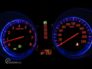 ღამით, ყველაზე სასიამოვნოა შვიდში ყოფნა. მოტივატორი არის ინსტრუმენტის ფარის განსაცვიფრებელი განათება. როდესაც მანქანა გამორთულია, ნომრები არ არის. დგას P