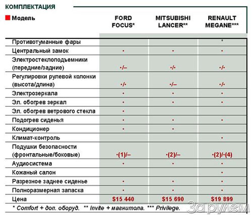 მოწინააღმდეგეები ჩნდებიან მხოლოდ უფრო ძვირადღირებულ ცვლილებებში სატესტო მანქანაში 15,440 დოლარად, შიდა ბაზრის ბესტსელერს Mitsubishi Lancer 15,690 დოლარად: 15,490 აშშ დოლარად მოწვევის პაკეტისთვის, ასევე მარტივი ფირის ჩამწერი 200 $. იაპონელებს არ აქვთ საჭე, რომელიც რეგულირდება სვეტის სიგრძისა და ქარის ცხელებით ელექტრო გათბობისას, მაგრამ ის უფრო მდიდარია უსაფრთხოების ერთი ბალიშით, უკანა ელექტრო ფანჯრებით, ABS და EBD.