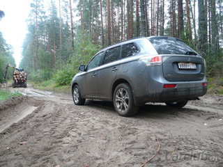 თუნდაც 18-დიუმიანი ბორბლების ზედა ვერსიით, რეზინის განზომილებით 225/55, მანქანა არ ჩანს მკაცრი. 215 მილიმეტრიანი გზის კლირენსი ენერგეტიკულ -ინტენსიურ გულსაკიდთან ერთად საშუალებას გაძლევთ არ დააზარალოთ რუსული გზების ნებისმიერი მიმართულებით. საცდელი მარშრუტი მოიცავდა ტყის გზის 30 კილომეტრს, საკმაოდ დიდი გუბეებითა და რუტებით. Outlander- მა გაუძლო ტესტს საპატივცემულოდ და მნიშვნელოვანი სიამოვნება მოუტანა, რაც საშუალებას აძლევდა არ იზრუნოს სიჩქარის არჩევანზე.