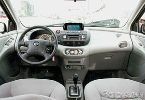 როგორც ეს უნდა იყოს კომპაქტური, მაგრამ მაინც ვენუ, თინს აქვს დიდი კარიბჭე, გლუვი სართული და მაღალი ფართო სალონი მრავალფეროვანი ტრანსფორმაციის ვარიანტებით. ამ უკანასკნელის რიცხვი 24-ს აღწევს, ძირითადად, სამი ცალკეული სკამით უკან, რომელიც შეიძლება ჩამოყალიბდეს და ჩამოყალიბდეს ერთად, გადალახოს ან დემონტაჟი. მათ ქვეშ, ორი კრივი caches, კიდევ ერთი წყვილი ნაყარი ყუთები ქვეშ წინა სავარძლები და, რა თქმა უნდა, ბევრი პატარა თაროები, ჯიბეები, ხელთათმანები წინ პანელი და კარი, და ზურგი წინა სავარძლები - დასაკეცი მაგიდები . მნიშვნელოვანი ყურადღება არის გადახდილი და უსაფრთხოება - ორი შუბლისა და ორი მხარის ბალიშები, ბრენდირებული Nissanovsky აქტიური ხელმძღვანელი შეზღუდვები, პრეტენზია და უსაფრთხოების ქამარი ძალისხმევა, shockproof ბარები კარი. საბოლოოდ, ჩანდა ბარიერი მაგისტრალური - შთამბეჭდავი. სამწუხაროა, რომ მისი სართული მხოლოდ ცეკვა, თუმცა საკმარისი სივრცე და სრული ზომის საჭე.