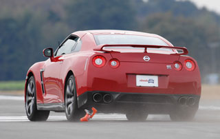ამან მოგვცა შესაძლებლობა, რომ განვსაზღვროთ განსაცვიფრებელი, რეალობის ზღვარზე, GT-R. მუწუკებზე ნიშნის დალევა, კონუსების გარშემო მყოფი, თქვენ იწყებთ გრძნობთ, რომ ეს ნამდვილად სპეციალური მანქანაა. მისი შეჩერება რჩება და მანქანა ზუსტად იქ მიდის, სადაც საჭიროა, მიუხედავად გზის ზედაპირის შეცდომებისა. მანქანა არ ანგრევს, მაგალითად Corvette ან Viper მაღალი სიჩქარის სლალომით. არ არსებობს შეგრძნება, რომ Porsche 911 ტურბო ძრავა, რომელიც მდებარეობს უკან, თანდათანობით წინ მიიწევს.
