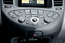 სიის გასწვრივ - ცენტრში მდებარე დაფა. მმმ, რა არის პირველი, რაც უნდა ითქვას, Nissan- ის ინტერიერში ჩანს ორიგინალური საკუთრების ფუნქცია. ყოველივე ამის შემდეგ, აკრიფეთ ტრიო მაგალითში გადავიდა პირდაპირ SUV IX- ის ბილიკიდან. მეორეს მხრივ, თავად აკრეფის შესანიშნავი წაკითხვის მიუხედავად, მოწყობილობები ოდნავ დაშორებულია მძღოლის ბუნებრივი კუთხიდან. ამრიგად, თქვენ ვერ გაიგებთ, თუ როგორ უნდა დაიჭიროთ გვერდითი ხედვა, მაგალითად, თქვენ ვერ მოულოდნელად დააჩქარებთ სიჩქარეს ან რევოლუციების რაოდენობას - მინიმუმამდე უნდა ივარჯიშოთ.