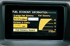 გარდა ამისა, მოგზაურობის შესახებ ინფორმაცია შეიძლება ნაჩვენები იყოს ფერადი 7 დიუმიანი ეკრანზე. დააჭირეთ ღილაკს ინფორმაციის ღილაკს და ეკრანზე ჩანს მძღოლის ინფორმაცია (დახარჯული დრო, დისტანცია, საშუალო სიჩქარე). ორჯერ - შეგიძლიათ აკონტროლოთ საწვავის მოხმარება. მესამე პრესა გეტყვით შემდეგ დროს. მოსახერხებლად, დამანგრევია.