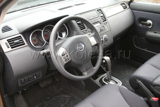 საჭე და ძირითადი კონფიგურაციას აქვს მაგნიტური კონტროლის ღილაკი. უფრო ძვირადღირებული ტექნიკით, მათთვის საკრუიზო კონტროლი, ტელეფონი და სხვა ვარიანტები დაემატება. მძღოლს არ ექნება პრობლემები TIIDA- ს კონტროლისთვის, მაგრამ ეს მანქანა სტუმართმოყვარე მგზავრებს. ადგილები Sofa როგორც კარგი D- კლასის სედანი. განსაკუთრებით კომფორტული უკან, თუ გადადით Sofa (in hatchbacks ეს შესაძლებელია) და შეცვალოს tilt უკან. თუმცა, ჰეჩბეკი არ უნდა იმოქმედოს ასეთი ფართო მაგისტრალური და მგზავრთა კომფორტის ზრდა პასუხობს ბარგის ნაწილების სიმძლავრის დაზიანებას. რა (ან ვინ) უფრო მნიშვნელოვანია, აირჩიე თავი. თუმცა, ეს არ არის ცუდი: სედანის მძღოლები ამ შესაძლებლობას ჩამორჩებიან.