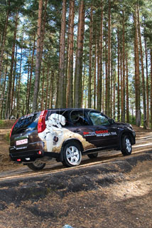 ამასთან, თქვენ შეგიძლიათ ჩართოთ სავალდებულო სრული, და დაარღვიოთ ბრუნვის თანაბრად ღერძი შორის. ამ რეჟიმში, X-Trail ნამდვილად კარგია, მაგრამ მაინც არა SUV