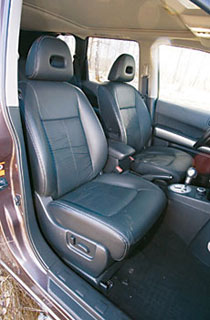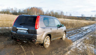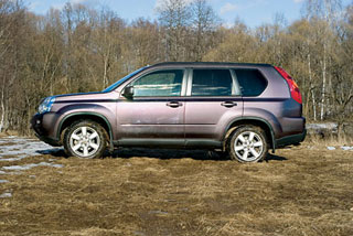 X-Trail შთაბეჭდილებას ახდენს ცხელი მანქანის, ძირითადად, პატარა ბორბლების წყალობით 215/60R17, რომელიც მან ერთად მიიღო შასის ქაშქიდან