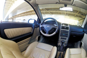 მე გახსენით კარი. ეს არის ჩარჩო მინის ოდნავ lowers, ტოვებს ბეჭედი. ეს არის ძირითადად უფრო ძვირადღირებული კუპე. დაბალი თავმჯდომარე დაუყოვნებლივ ადგენს გვერდითი მხარდაჭერას სერიოზული swarms არ დატოვებს თავისუფლებას არასაჭირო მოძრაობებს. სასურველი პარამეტრები მოახერხა დაუყოვნებლივ, და მე უნდა ვთქვა, მაშინაც კი, მას შემდეგ, რაც მთელი დღის განმავლობაში დაღლილობის უწყვეტი მამოძრავებელი, სრულიად არ ვგრძნობდი. დაფარული კანის საჭე, ჯვრის მონაკვეთის შესანიშნავად შერჩეული, მაგრამ დიამეტრი შეიძლება გაკეთდეს პატარა. Steal კონცენტრატორები ასრულებს ტრადიციული კომპლექტი ამოცანები. ინსტრუმენტის ფარი შესაბამისად გაფორმებულია. თეთრი სასწორები, იგივე ზომის ტაქომეტრი და სისწრაფე, დამხმარე მოწყობილობების მხარეს. ყველა ინფორმაცია კარგად არის წაკითხული და არ გადაფარავს საჭე. CD მიმღები და კლიმატის კონტროლის განყოფილება აღმოჩნდა ცენტრალურ კონსოლზე. ავტომატური გადაცემის სელექტორის ცენტრალურ გვირაბზე ყოფნა ოდნავ იმედგაცრუებული, თუმცა, სპორტის რეჟიმის გადართვისას, მე ვიყენებ მას. როგორც ჩანს, წარმოუდგენელია, მაგრამ უკანა სავარძელში, ორი ადამიანი შეიძლება განთავსდეს (თუ ისინი, რა თქმა უნდა, არ არიან კალათბურთელები). დიახ, და შეღწევადობის პროცედურა არ არის იმდენად რთული, წინა სავარძელი არ არის მხოლოდ დაკეცილი, არამედ დისკები წინ. მაგრამ ძველი ადგილი დააბრუნებს, ეს ასე არ არის ბედნიერი. თუ თქვენ უბრალოდ გაიყვანეთ უკან, მაშინ თქვენ უნდა ვეძებოთ ძველი პოზიცია. თავმჯდომარემ უნდა გადავიდეს უკან და მხოლოდ მაშინ დააყენებს უკან. შეეგუება ამ ალგორითმს, არ დაუყოვნებლივ ... ბარგის კუპე სიტყვის კუპესთან ერთად სათაურით არის უბრალოდ მიუწვდომელი დიდი მოცულობა. ასე რომ, მას შეუძლია ხელფასის ხელფასს და ეკონომიკურ მიზნებზე გამოიყენოს.