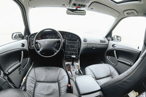 თქვენ ვერ იტყვით Saab 9-5- ზე. ადგილს აქვს ყველა შესაძლო კორექტირება, უფრო მეტიც, ელექტრიფიცირებული და მეხსიერებით. ის აღჭურვილია და ა.შ. აქტიური საყრდენი, რომელიც ძლიერი დარტყმით, წინ და ზევით მოძრაობს, ხელს უშლის საშვილოსნოს ყელის ხერხემლის დაზიანებებს. გამაძლიერებელი სვეტი ასევე რეგულირდება, ასე რომ, მალე კომფორტულად მივიღე და სალონის შემოწმების შესახებ დავამთავრე.