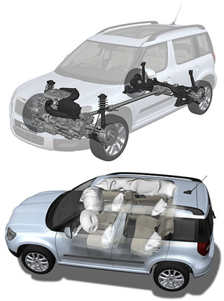 ძირითადი აღჭურვილობის დროს, Yeti- ს აქვს ექვსი საჰაერო ჩანთა პერიმეტრის გარშემო. გვერდითი გასაბერი ბალიშები (როგორც ტიგუანზე), რომელიც განკუთვნილია უკანა მგზავრებისთვის