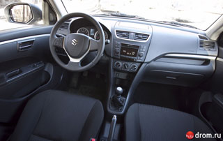 მაგრამ გატარება ცოტა მოგვიანებით იქნება, მაგრამ ახლა, სალონის გაცნობა. ინტერიერი კარგია. შიგნით, Swift არ ცდილობს იყოს glamorous ან როგორც ჩანს, პრემია, ეს არის გულწრფელი და მაღალი ხარისხი. დასრულების მასალა არ არის ყველაზე ძვირი, მაგრამ საკმაოდ მისაღები, განსაკუთრებით დაუწერელი W- კლასებისთვის. პლასტიკური რთულია ყველგან, თუმცა, ის წესიერად გამოიყურება, დიზაინი კი სასიამოვნო, სასაცილო. სალონი ცოცხალია ვერცხლის ჩანართებით, ხოლო წინა პანელი იყოფა ნიშის ზედა და ქვედა ნაწილში, სადაც შეგიძლიათ დაამატოთ პატარა ნივთები. მარცხენა მხარეს, მძღოლის მხრიდან, ამ გზით, მობილური ტელეფონის პატარა ჯიბე მიიღება.
