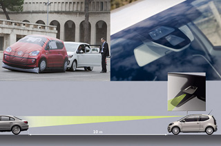 VW UP– ის დამატებით! თქვენ შეგიძლიათ აღჭურვა ქალაქის გადაუდებელი სამუხრუჭე დამუხრუჭების სისტემა. ეს, ლაზერული სენსორის გამოყენებით, უკანა ხედვის სარკის ქვეშ, ქარის ცხრილზე, სკანირებს მანქანის წინ მდებარე სივრცეს 10 მეტრამდე მანძილზე. სისტემა მუშაობს სიჩქარით 5 -დან 30 კილომეტრამდე საათში და საშუალებას გაძლევთ თავიდან აიცილოთ უბედური შემთხვევა, საჭიროების შემთხვევაში, მას სასწრაფოდ შეუძლია შეაჩეროს სრული გაჩერება. ამავდროულად, ქალაქის გადაუდებელი დამუხრუჭება არ მიიღებს რაიმე ზომებს, თუ მძღოლი საჭეს მიუბრუნდება, დააჭირეთ სამუხრუჭე ან clutch pedal.