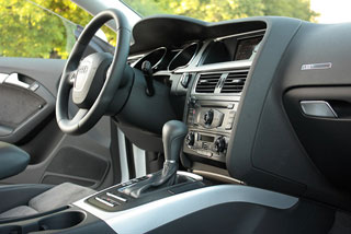 Visuri - Visuri, dar vom continua narațiunea A5. La prima vedere, salonul pare foarte simplu: nu există niciun copac, nici elemente de designer extravagante, iar pielea nu scânteie cu un luciu al picioarelor. Ce copac poate fi într -o mașină sport?! Inserții de aluminiu îngrijite ale finisajelor, părți mediane din piele de căprioară gri închisă a scaunelor și ergonomia maximă a locației dispozitivelor de la viteză și drumul nu distrage atenția. Țesătura este deosebit de plăcută pentru a fi tăiată cu acoperișul din interior fără villi, firele sunt unul la unu. Și cel mai important, există o atmosferă în A5 în cabină, care acceptă șoferul pentru prima dată ca și cum ar face acest lucru cel puțin în cincizeci.