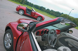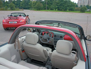 Я тут не зря завернул про историческую родину. На самом деле обе эти машины совсем не американские, как, вроде, должно быть. PT Cruiser Cabrio выпускается либо в Мексике, либо в Австрии, что довольно-таки космополитично с его стороны. Crossfire Roadster и вовсе продукт целиком немецкий, потому как производится на заводе фирмы Karmann в Германии из немецких же деталей в основе машины таится мерседесовская платформа с мотором вместе, некогда принадлежавшая родстеру SLK предыдущего поколения. Такая вот занимательная экономическая география.