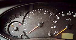 (-) Tahometrul de focalizare digitizat la 7 mii de rotații. Iar întreaga scară este vopsită în aceeași culoare. Interesant, limita revoluțiilor critice se datorează scalei? Cu auzul, el vine pe unelte mici în regiunea de 6 mii