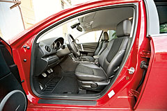 Scaunul șoferului Mazda nu este convenabil cuvinte. Dar finisajul combinat din piele-tesut nu arata prea impresionant