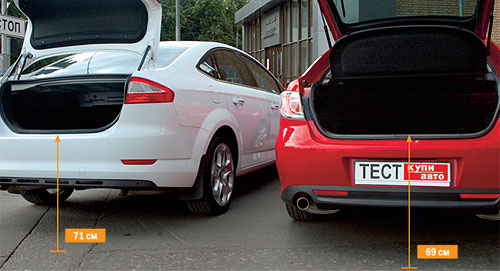 Sedanii clasici din poziția de capacitate de transport nu este cea mai bună alegere. Rețineți că toate datele privind volumul trunchiului sunt date pentru Ford (stânga) cu o roată de rezervă completă și pentru Mazda cu regiunea
