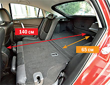 Hatchback-urile nu sunt în zadar sunt considerate practice decât sedanii. Cu scaune îndoite în Mazda (stânga) și Mondeo sunt ușor plasate lungimi solide. Și lipsa unui arc limitator între cabină și trunchi face posibilă transportul unor elemente voluminoase