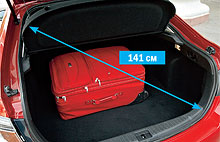 O deschidere imensă de bagaje a ambelor hatchback face încărcarea. 140 cm este de aproape unu și jumătate mai mare Sedan clasic diagonal