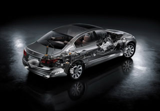 poziţie). La viteze, clearance-ul de peste 120 km / h scade automat cu 15 mm. Suspensia frontală este colectată pe pârghii duble pe fiecare parte și în spatele schemei de cinci dimensiuni. Datorită prezenței în proiectarea elementelor pneumatice, mașina poate schimba clearance-ul. Punerea forțat cu 30 mm (până la 70 km / h, organismul se va întoarce la poziția inițială). La viteze, clearance-ul de peste 120 km / h scade automat cu 15 mm. Mașina este echipată cu două V6 și una V8 a familiei Lambda. Versiunile cu V6 de 3,3 sau 3,8 litri vor veni în Rusia. Iar V8 va vinde numai în America, Coreea și țările din Orientul Mijlociu. Motoarele din aluminiu blochează. Motoarele sunt echipate cu faze variabile de distribuție a gazelor pe intrare și eliberare. Galeria de admisie cu geometrie variabilă.