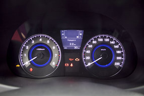 Toate vehiculele de testare au avut un motor de 1,6 litri, cu un mecanic cu 5 trepte sau o mașină automată cu 4 trepte. Accelerează vesel, fără probleme și încrezători. Motor, deși nu este nou, dar norocos. Din cele două unelte, mecanicii au plăcut mai mult. Non-salariu Automat cu 4 trepte, bun numai dacă nu ați decis să accelerați. Apăsat pe dreapta foarte sensibil, apropo, pedala este ușor mai puternică, iar motorul, tăcerea fără compromis, deplasând săgeata tahometrului la cele mai multe 6.000 de rotații. Și cutia de viteze manuală funcționează foarte clar, iar cursul treptei nu este atât de lung. Ergonomia este bine gândit: butoanele de pe ușă și pe volan sunt exact acolo unde este necesar. Aceasta este doar marginea volanului este subțire. Dispozitivele sunt simple și nu strălucesc cu soluții noi de design, dar informațiile sunt oferite abuz: între tahometru și vitezometru există un afișaj trapezoidal cu iluminare purpuriu-albastră care conține informații rutiere (kilometru, consum de combustibil etc.), precum și temperatura digitală a motorului și nivelurile de combustibil.