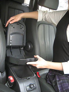Aproape tot spațiul util dintre scaune este ocupat de un slot telefonic. Apropo, nu a trebuit să-l folosesc, deoarece telefonul se conectează cu ușurință cu aparatul cu ajutorul dinți albastru. Datorită acestui detaliu de înaltă tech, locul dintre scaune rămâne doar pentru stiloul original, pentru care pasagerul din față poate ține pe un drum prost sau cu viteză mare și o frână de mână făcută în același stil. (Oh, nu m -aș confunda!).